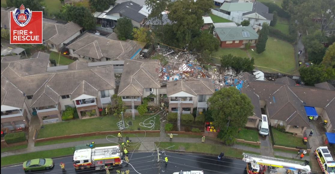 AceBreakingNews – A delicate search and rescue operation is under way in Western Sydney for a woman trapped beneath rubble after an explosion destroyed a townhouse in a complex this afternoon.