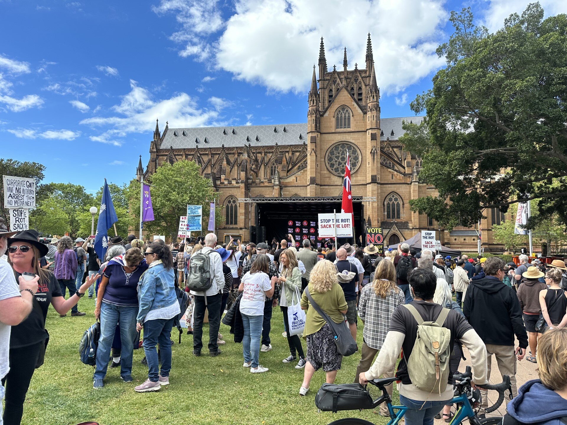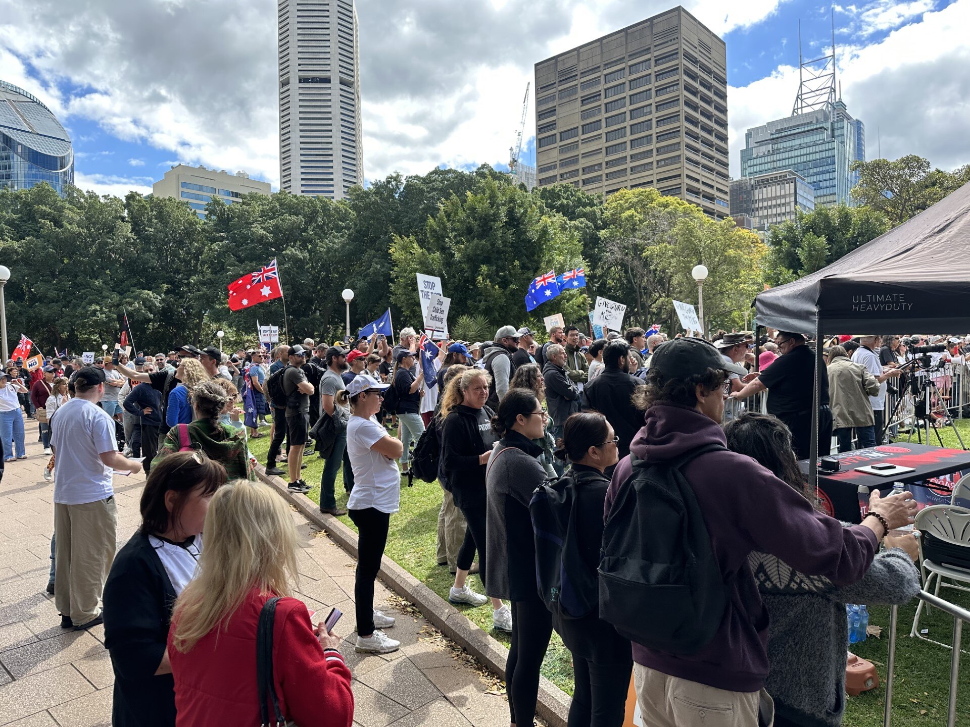 About 1,000 people gathered in Sydney’s Hyde Park to advocate against the Voice to Parliament, in an event promoted heavily by an online radio station.