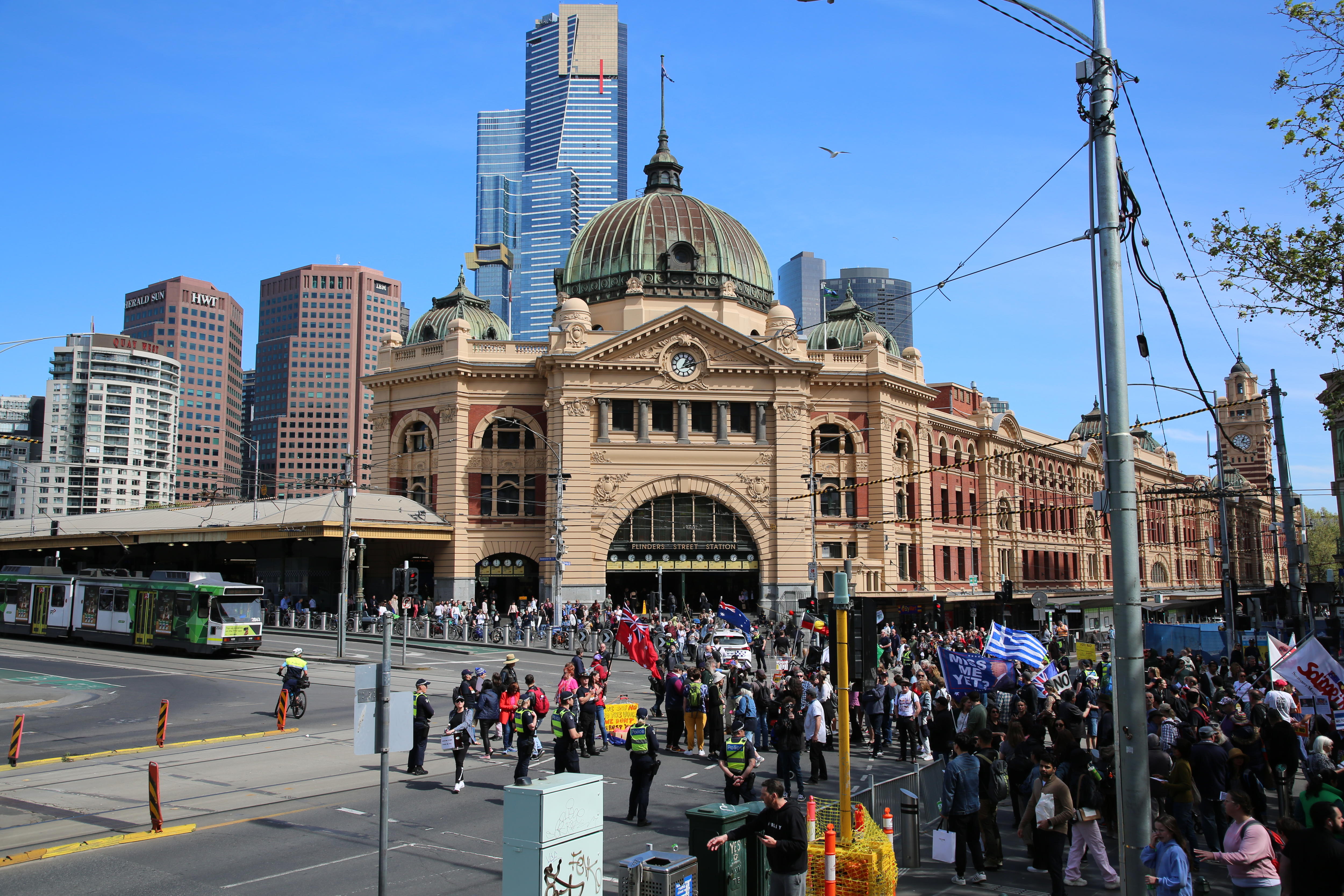 “We need to create a new constitution … we need to create a new flag that will represent all of us.”Traffic was disrupted in Melbourne’s CBD as those attending the rally made speeches on the steps of Flinders Street Station.(ABC News)