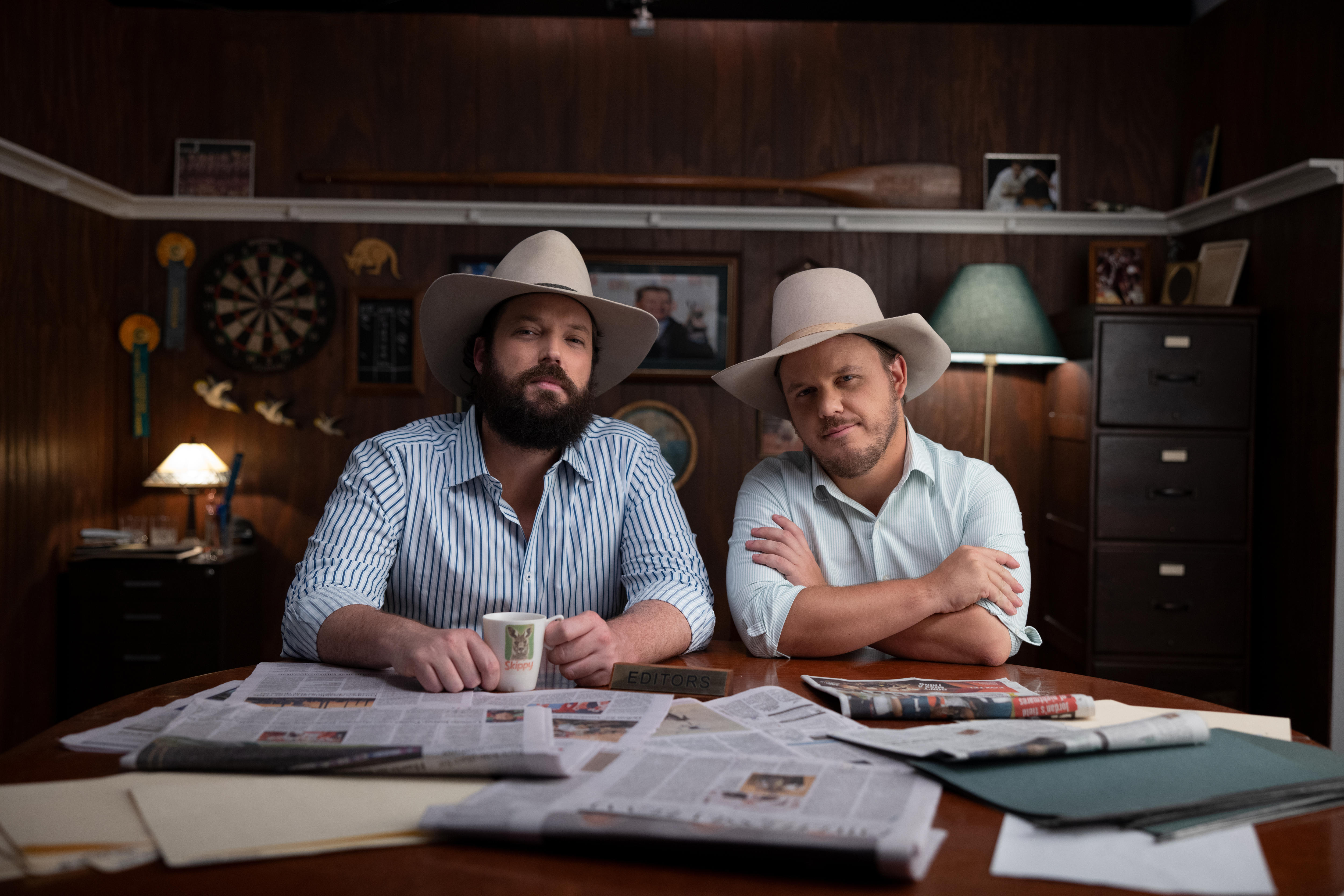 “Our closest capital is Adelaide. We’re in Queensland. We’re not far from the Territory. But basically, we’re Central. So, we’re Australia’s Parramatta is a way of putting it.”Clancy Overell and Errol Parker star in the new series The Betoota Advocate Presents.(Supplied: Paramount+)none