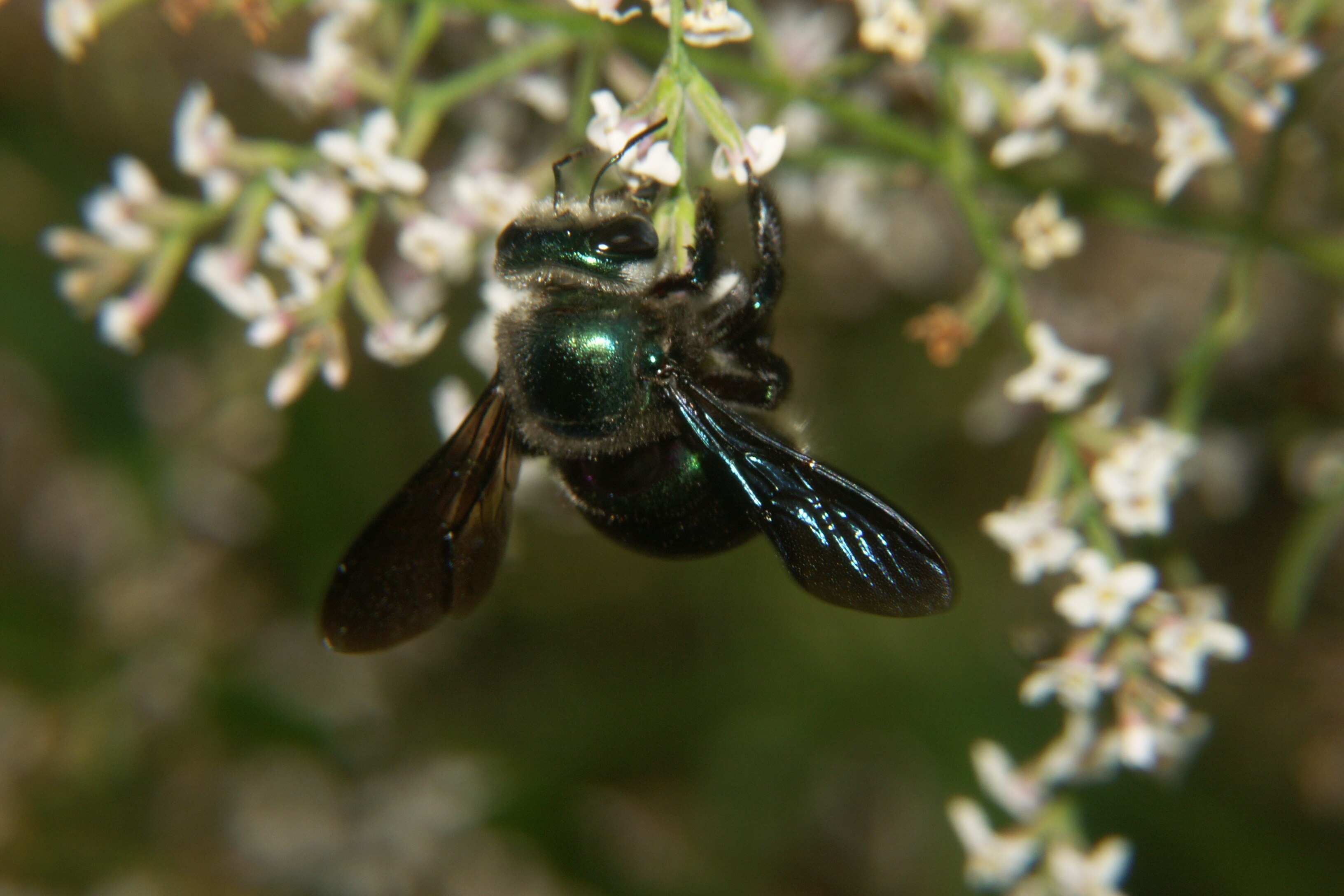 The insects are called carpenter bees because they make their nests by chewing wood.